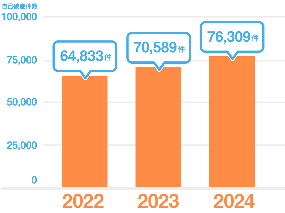 ここ数年、平均7万人を超える方が「自己破産」という手段で借金の悩みを解決されています。